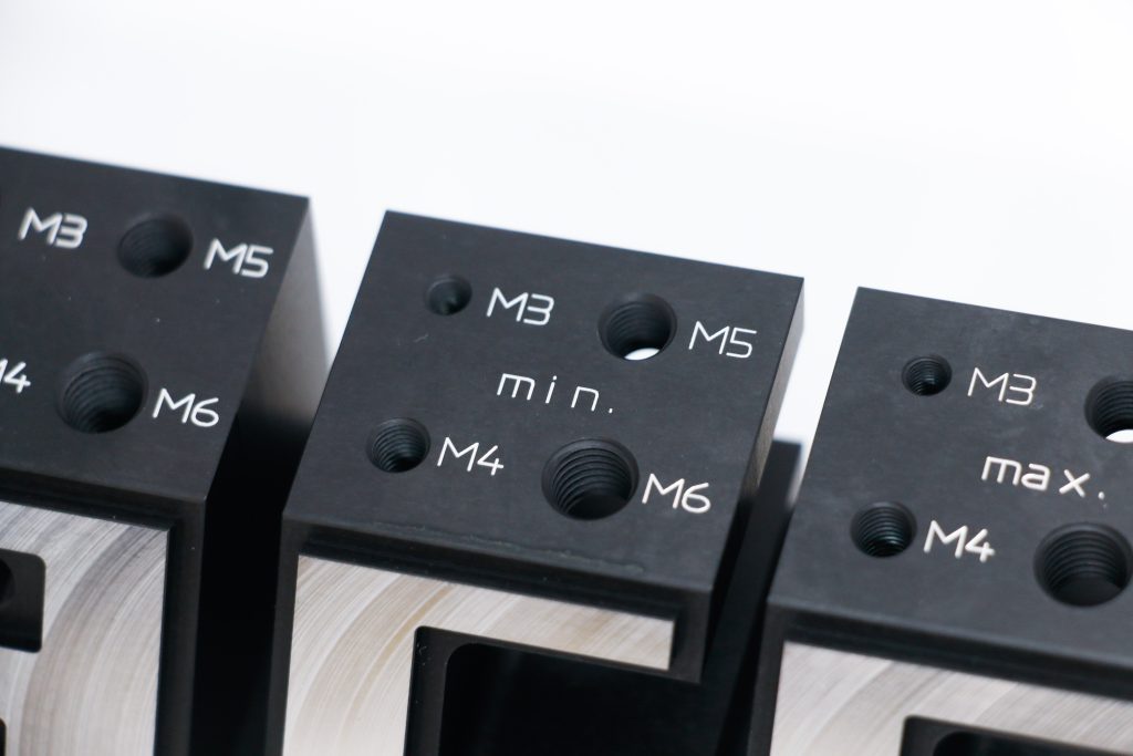タングレス・インサート穴横の文字も表面処理後に刃物で刻印しました