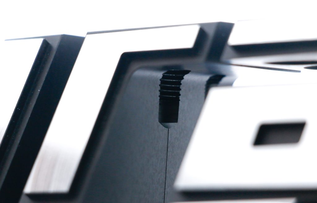 外観を最優先し、加工面をできるだけ美しく仕上げることにこだわりました。あえて加工時に角度を変化させるプログラムを組むことで、ツール目が極力目立たないよう工夫し、1st加工上がりの時には本当にピカピカと輝く仕上がりとなりました。