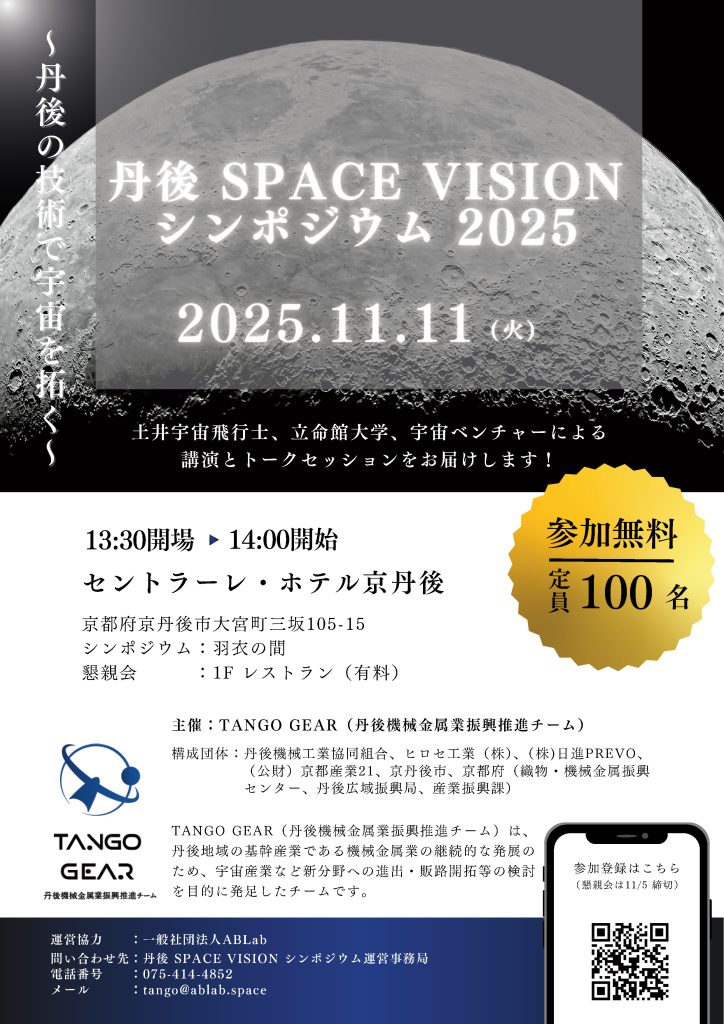 11月11日(火)に開催される『丹後 SPACE VISION シンポジウム 2025』にて、弊社 開発事業本部 本部長 林 新太郎が、